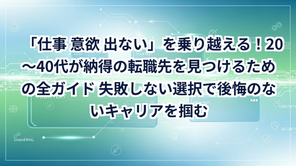 「仕事 意欲 出ない」を乗り越える!20〜40代が納得の転職先を見つけるための全ガイド 失敗しない選択で後悔のないキャリアを掴む