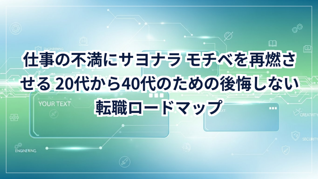 「仕事 意欲 出ない」と感じ、毎日が灰色に思えていませんか。20代から40代の皆さんが今、もし今の仕事に不満を抱え、転職をぼんやりとでも考えているなら、それは新しい自分に出会うチャンスかもしれません。何から手をつければいいのか分からない、そん... -