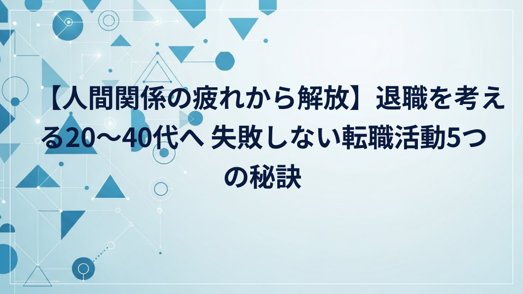 【人間関係の疲れから解放】退職を考える20〜40代へ 失敗しない転職活動5つの秘訣